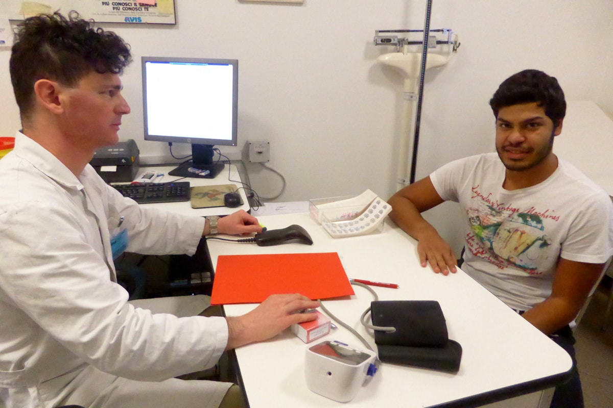 - Il dottor Bonetti in fase di anamnesi con una donatrice
