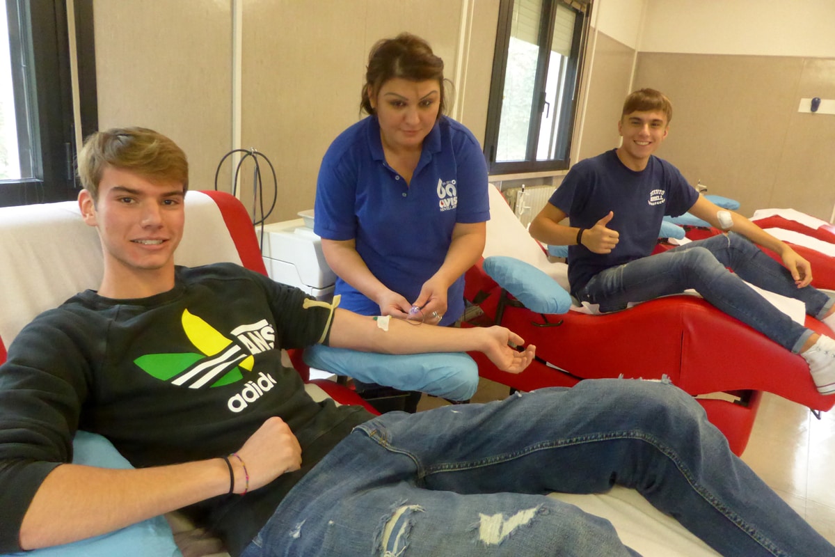 Nelle foto gli studenti di quinta superiore Russell e Carrara (2019) alla loro prima donazione di sangue
