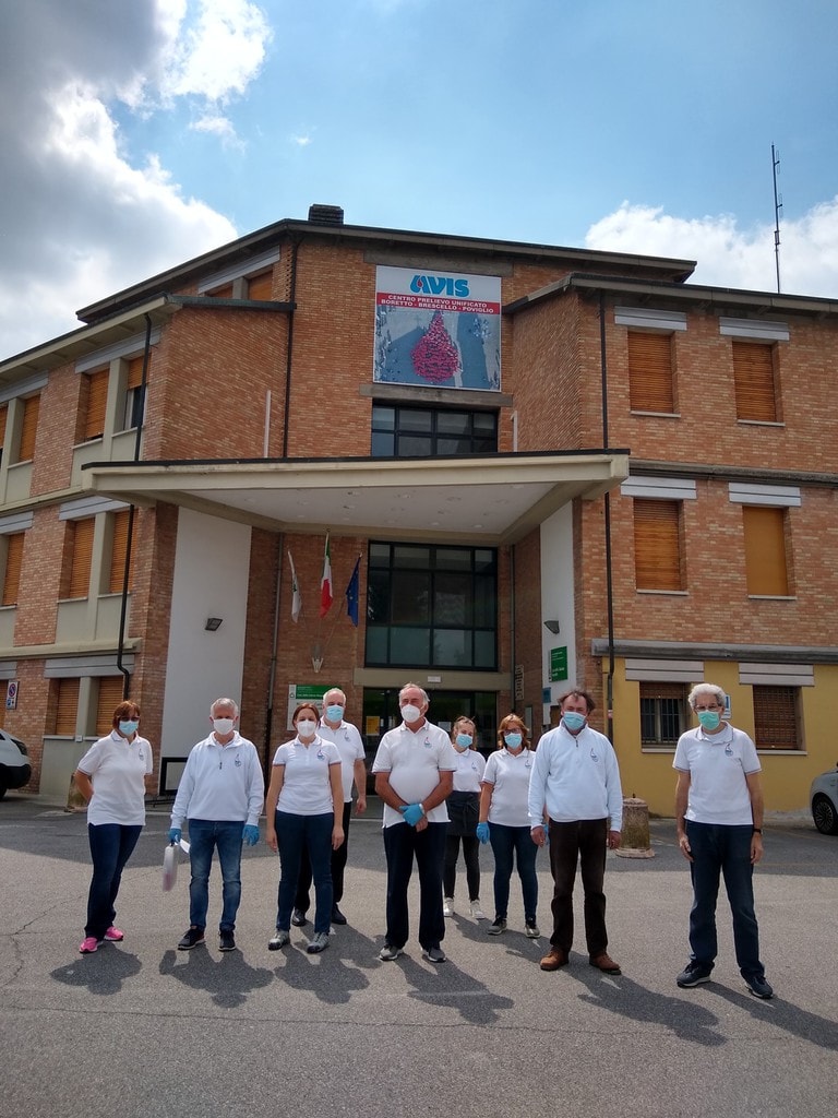 La fotografia, scattata nel 2018 in occasione dei 60 anni dell’associazione, ritrae appunto la goccia di Avis formata sulla piazza del paese (con l’ombra del campanile di Don Camillo) da donatori, volontari e amici di Avis Brescello e delle Avis consorelle che hanno partecipato ai festeggiamenti.