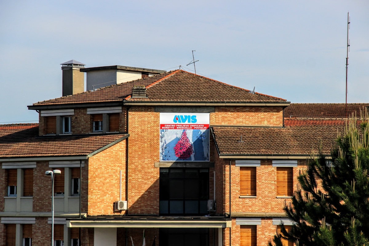La foto dei 60 anni di Avis Brescello fa bella mostra sulla facciata della struttura